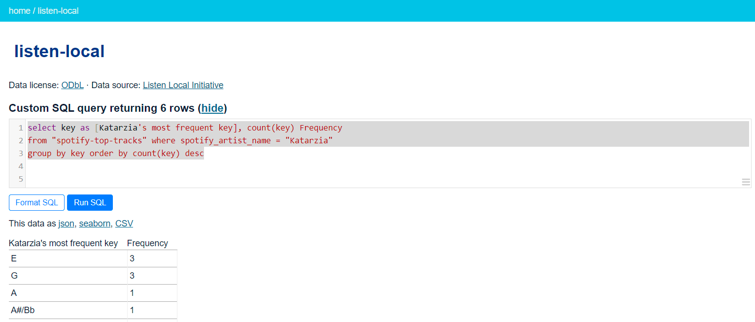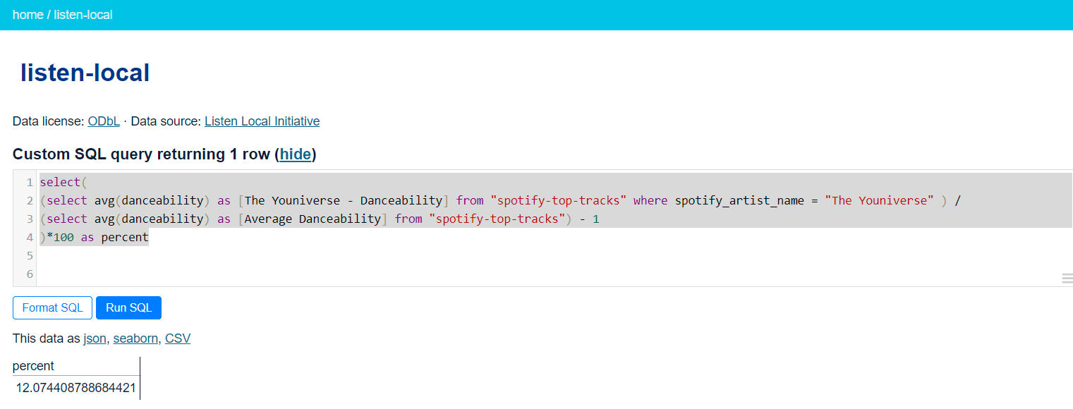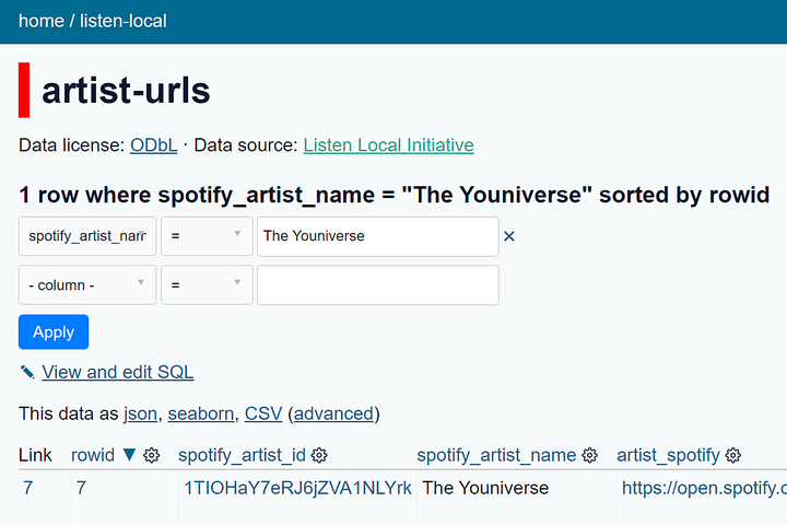 We created a modern API to access the database for researchers, labels, and representative music organizations. The API works with standard SQL queries (see full documentation here), but also allows intuitive filters for manual use.